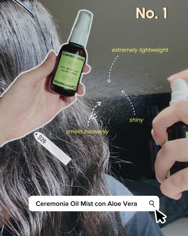 1. Ceremonia Oil Mist con Aloe Vera ($26)